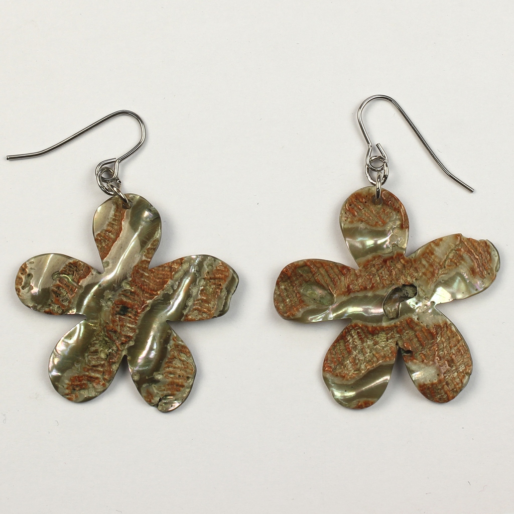 Boucles d’oreilles Nacre Rugueuse. 03. Modèle Fleur. Assortis