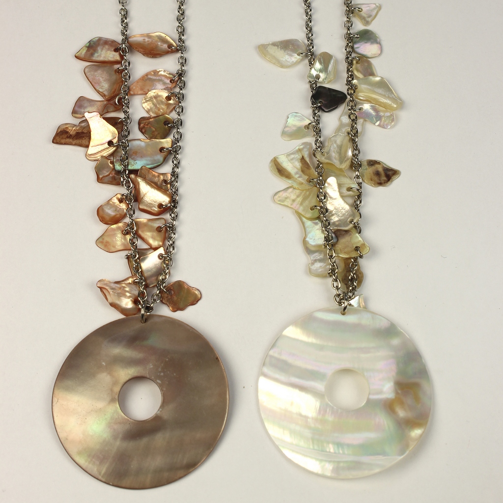 Produit : Collier Capiz avec chip et métal.