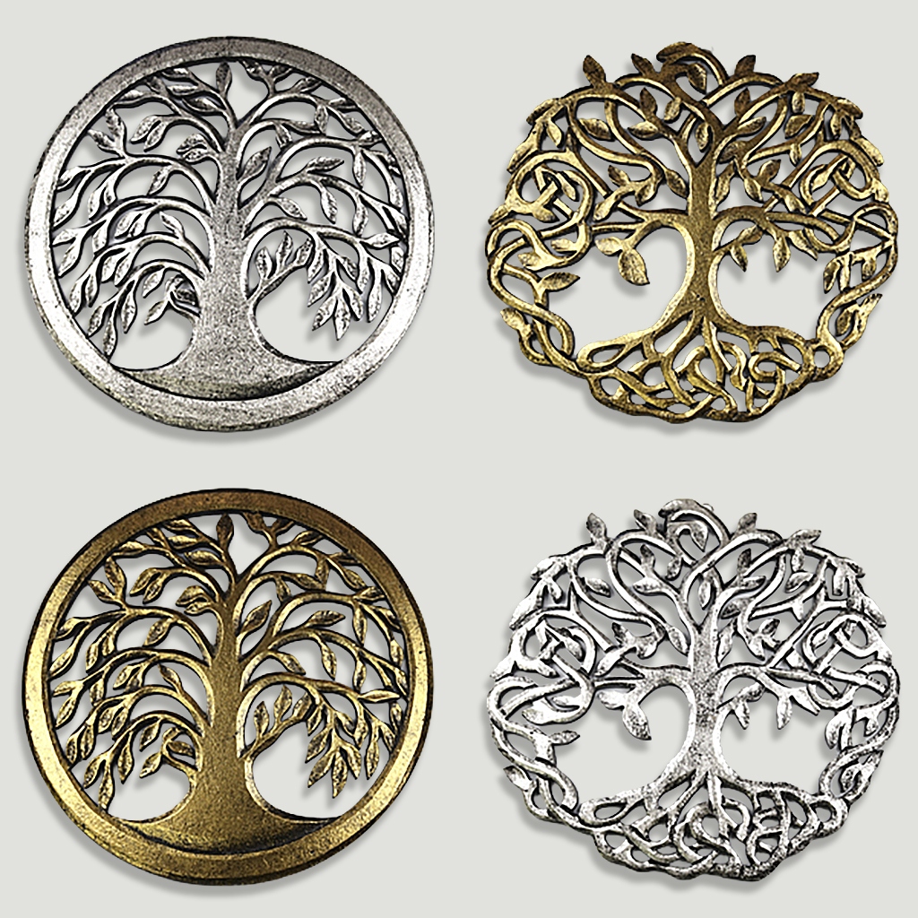 Arbre de vie doré ou argenté pour mur en bois 2 modèles 30cm