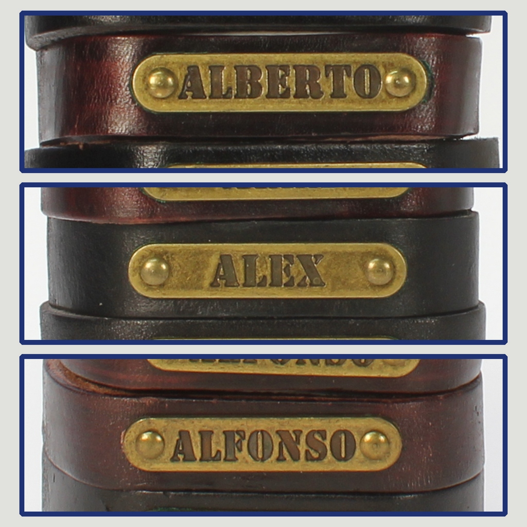 Gancho 04 – Pulsera piel con nombre. Letra A: Alberto, Álex y Alfonso