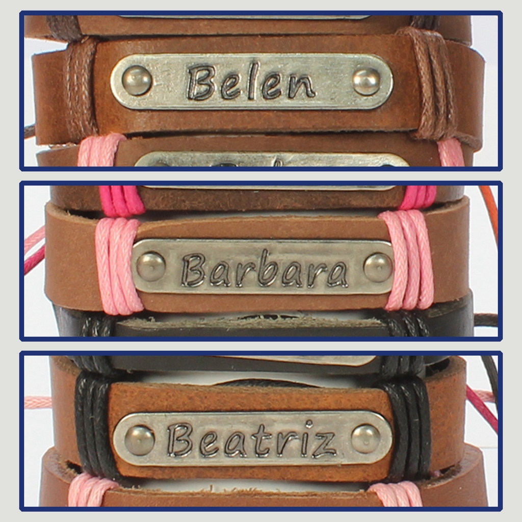 Gancho 11 – Pulsera piel con nombre. Letra B: Belén, Bárbara y Beatriz