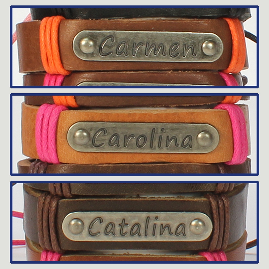 Gancho 15 – Pulsera piel con nombre. Letra C: Carmen, Carolina y Catalina
