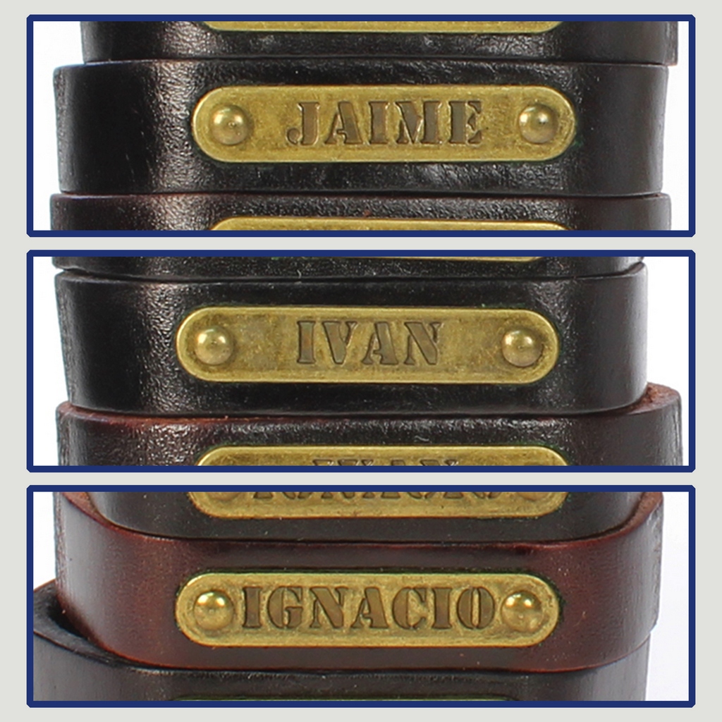 Gancho 26 – Pulsera piel con nombre. Letras I, J: Jaime, Iván e Ignacio