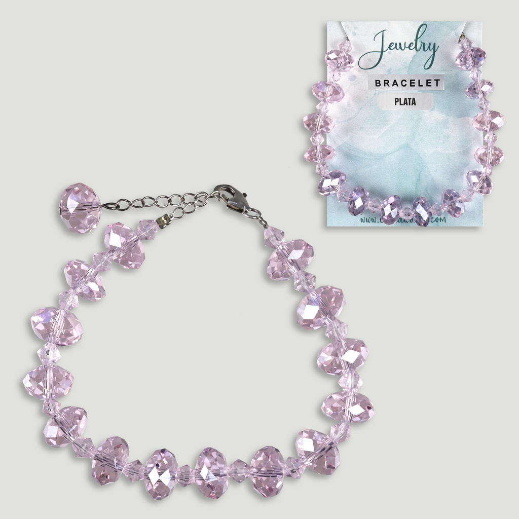 Pulseira cristal facetado. Fecho prata. Cor rosa