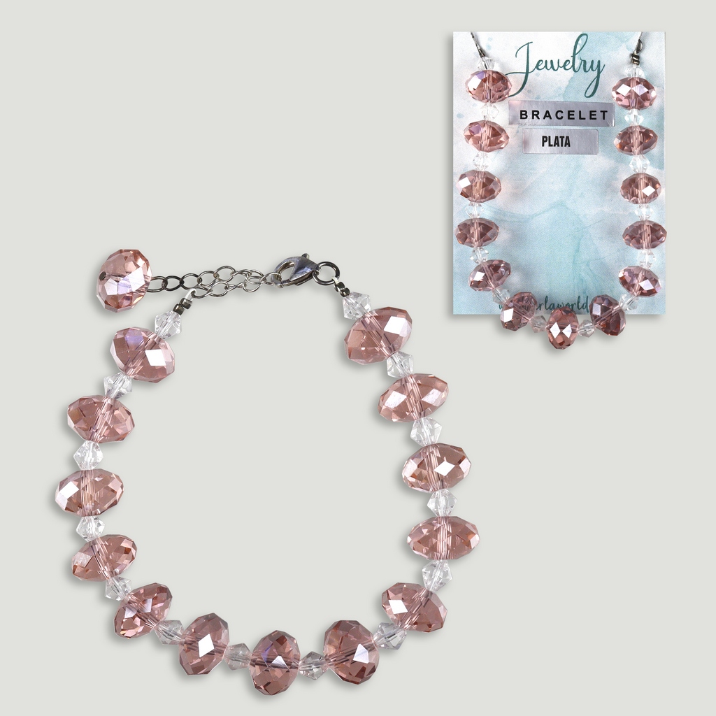 Pulseira cristal facetado. Fecho prata. Cor salmão