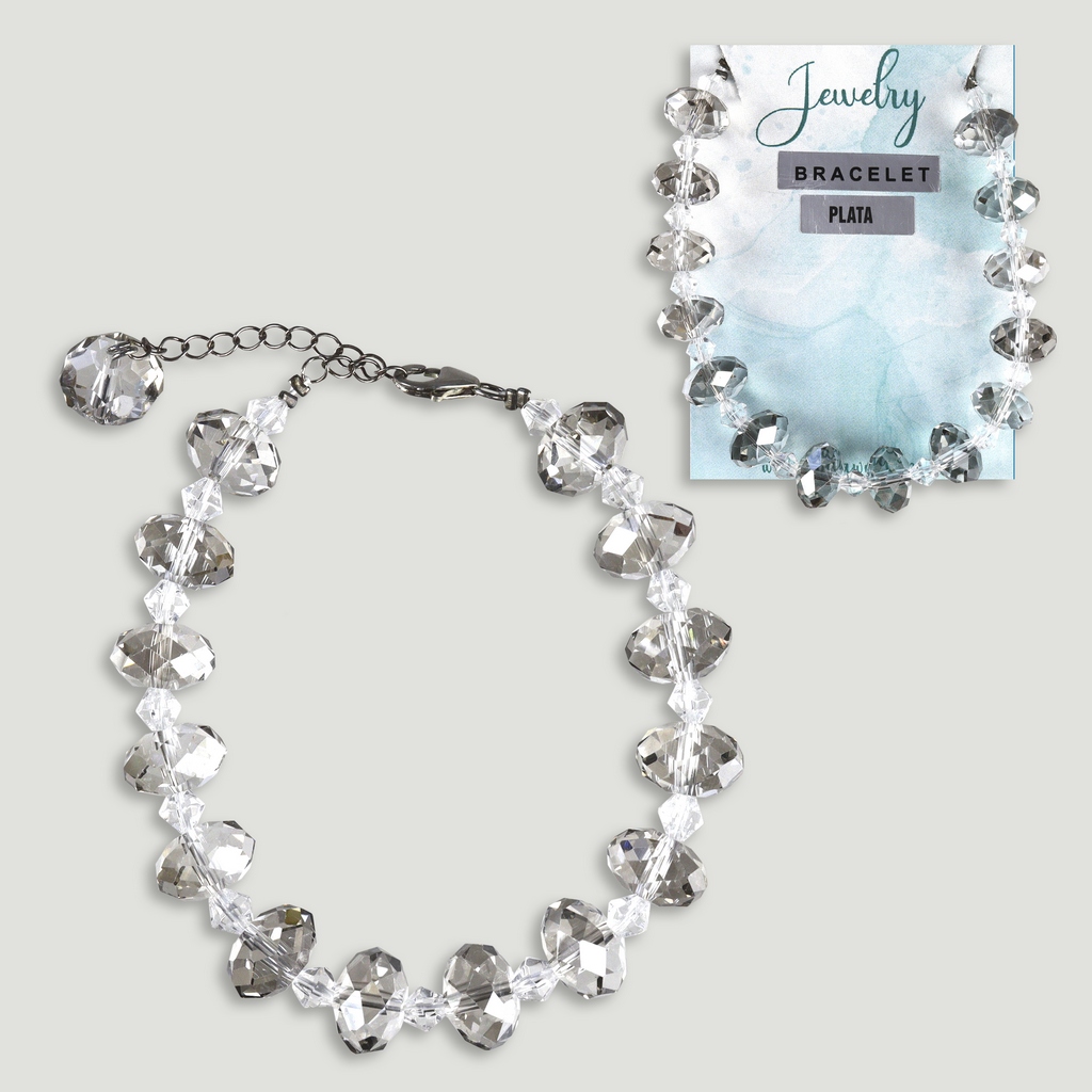 Pulseira cristal facetado. Fecho prata. Cor fumado