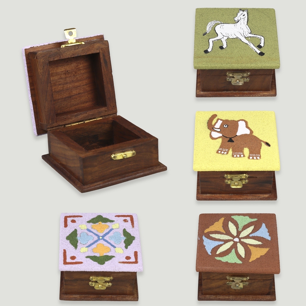 Caixa madeira areia pintada. Modelos sortidos. 8x8cm