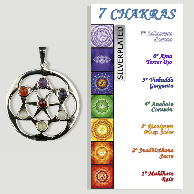 CHAKRA. Pendente Banhado a Prata. Roda e Estrela