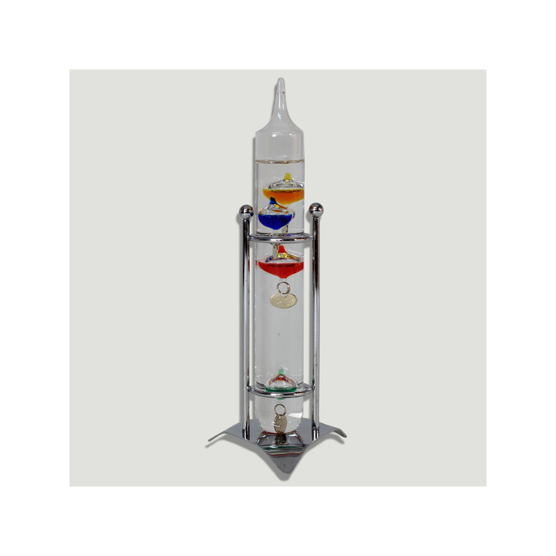 Termômetro de vidro Galileo com base de metal. 12x30cm