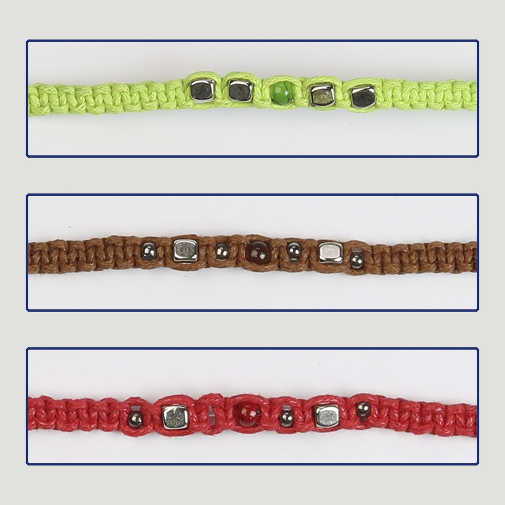 Pulseira de cordão. 81. Cubos metal. Sortidas