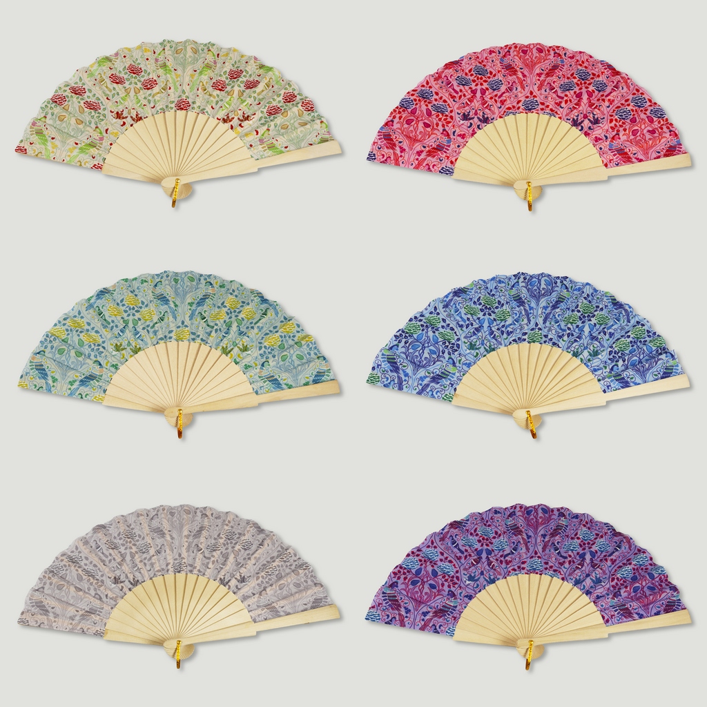 Leque de madeira. 30. Modelo Pássaro e Flores. Surtidos