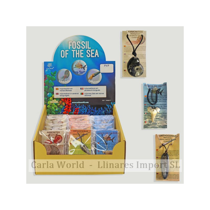 Tipos: Ammonite, Orthocera y Diente de Tiburón.