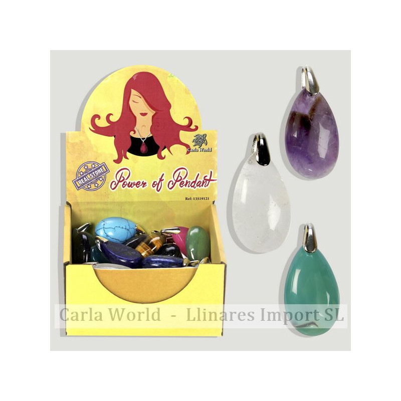 Pendente folheado a prata com cabochão em forma de lágrima mineral.
