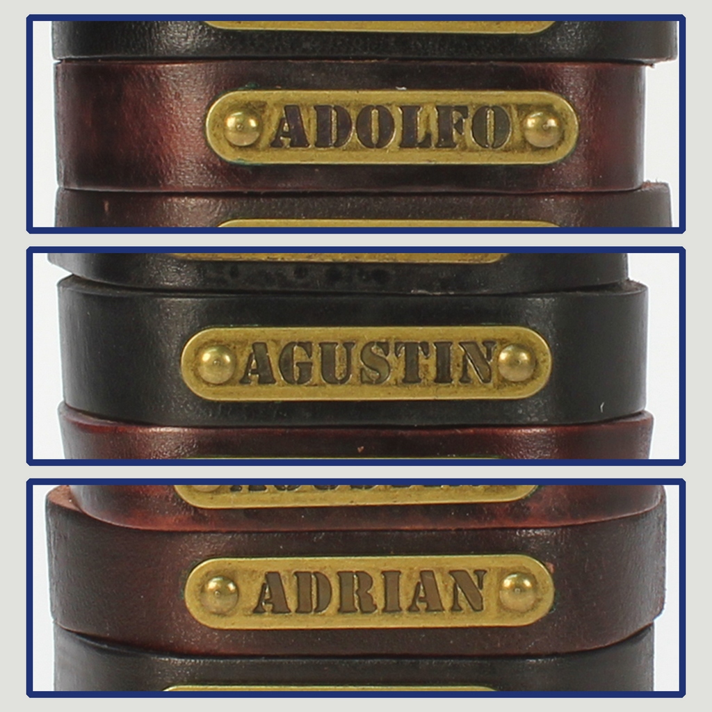 Gancho 02 – Pulsera piel con nombre. Letra A: Adolfo, Agustín y Adrián