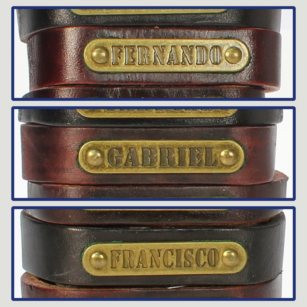 Gancho 22 – Pulsera piel con nombre. Letras F,G: Fernando, Gabriel y Francisco