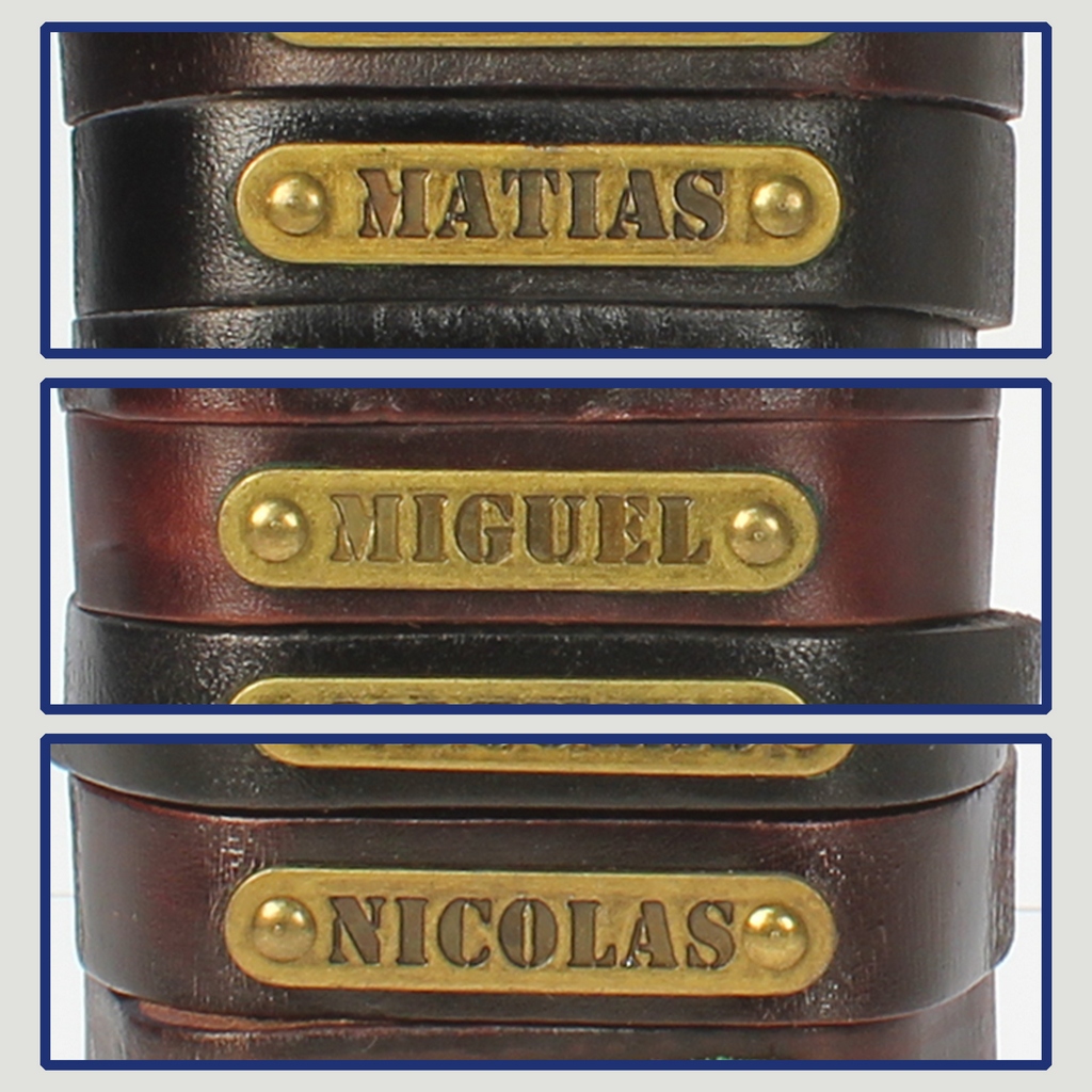 Gancho 42 – Pulsera piel con nombre. Letras M,N: Matías, Miguel y Nicolás