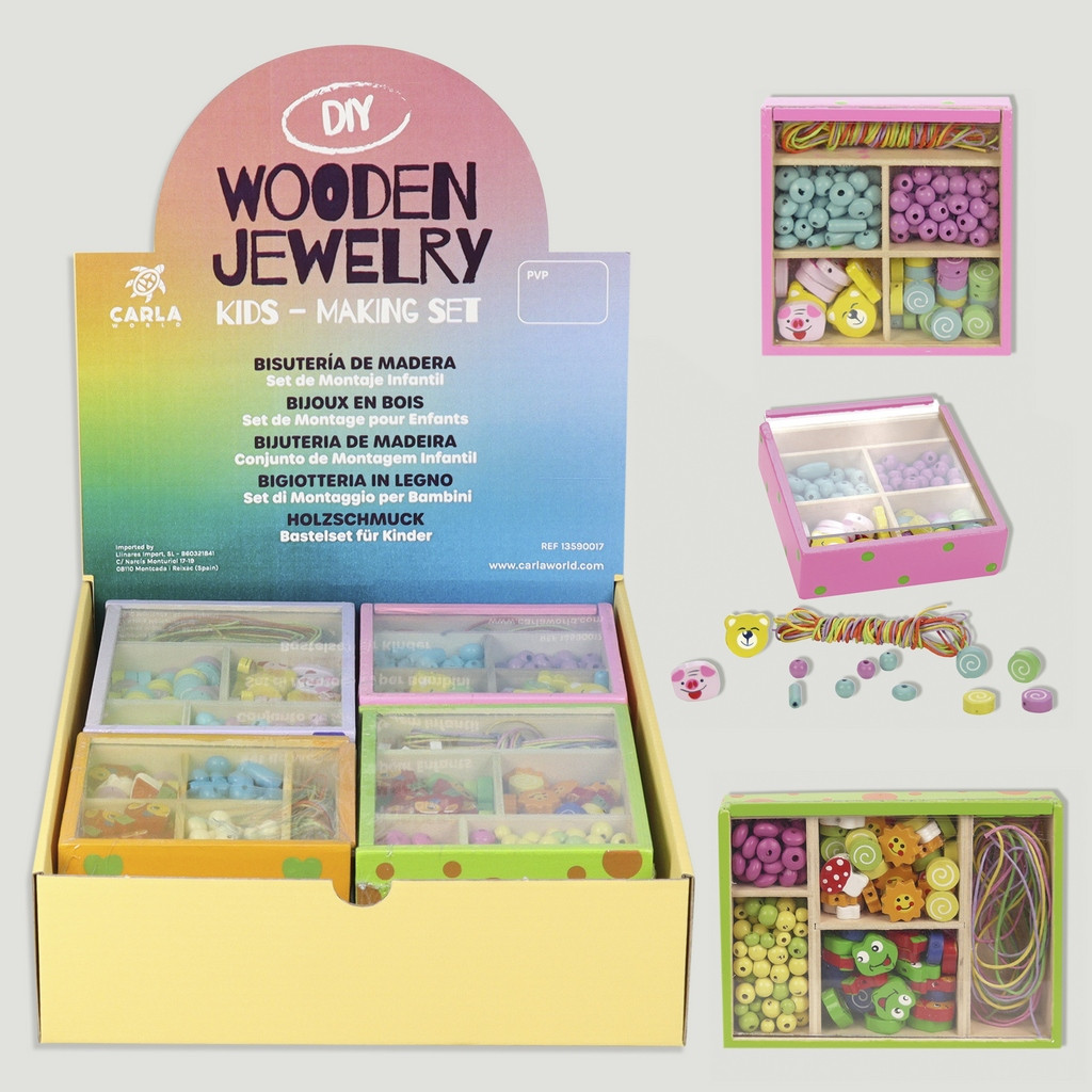 Caixa 5 divisórias com conjunto de montagem para colar infantil em madeira pintada.